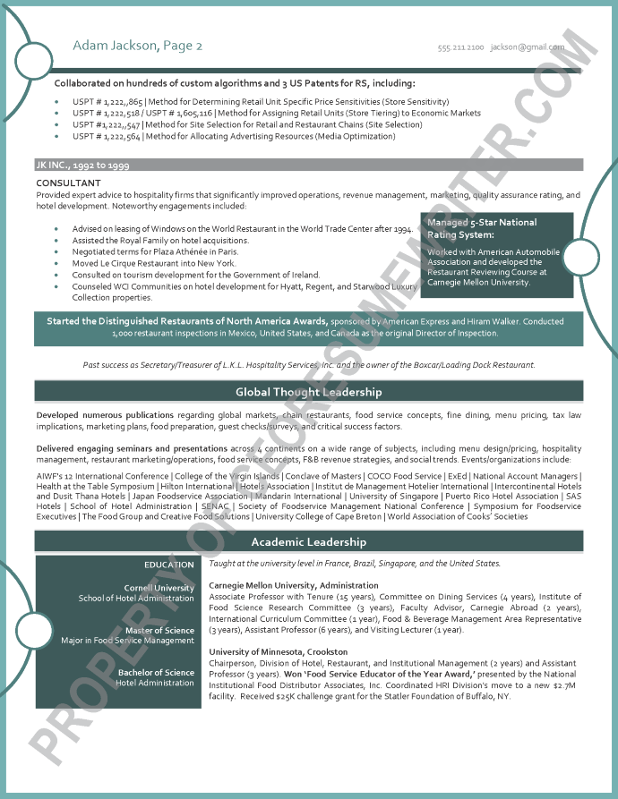 Written for a senior executive seeking a position as a Senior Advisor to corporate boards, corporations or Board of Directors for top restaurant brands and global food franchises. This sample executive board resume was written with an emphasis on pricing structures, strategic initiatives and thought leadership for global food franchises.