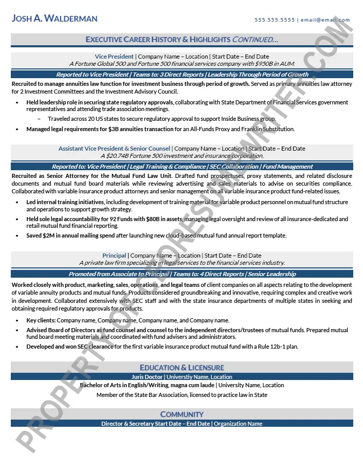 Executive board resume example